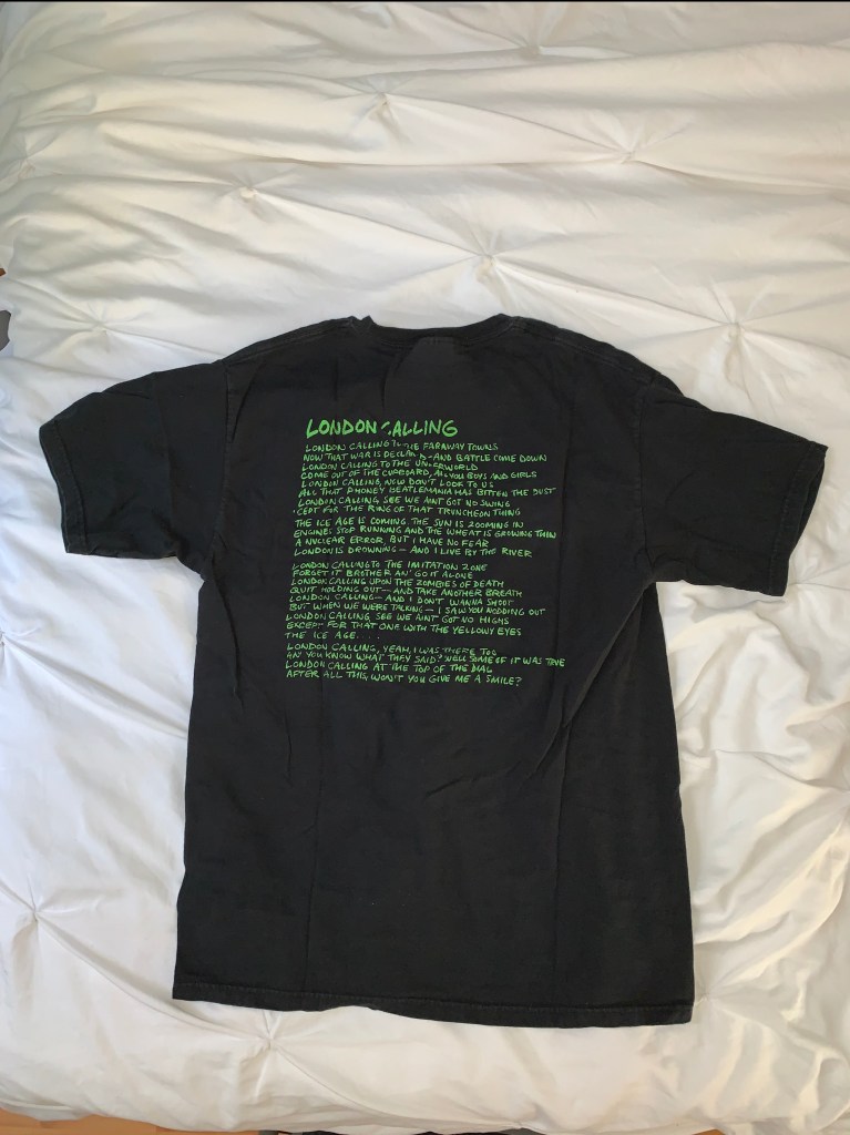 Enter “London Calling.” I specifically recall getting in trouble for not interacting with my cohorts on a scholarship trip to D.C. because I chose to listen to “Lost in the Supermarket” instead of talk to them about what they did or where they were from. The record helped me to give less of a shit. One day when I was at school, I wore the shirt. My friend turned to me and asked, “Doesn’t Tim have that shirt?”