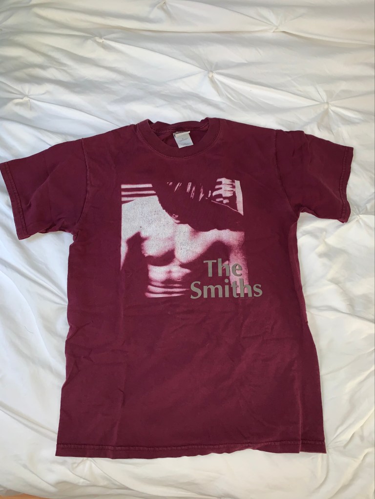 Much like most leap years filled with soul searching, I browsed the internet for random things. Hopping on eBay, I searched for Smiths stuff. When I found the listing for the t-shirt, I laughed at the possibility that I could get the shirt, because I knew how popular The Smiths were. Self Titled has such a bon vivant that makes The Smiths unapologetically themselves. I placed my bid either way, and I went along my day. Fast forward to the late afternoon, I received an email telling me that I won the auction. A whopping $12 and two weeks later when it arrived, I joined Johnny and Morrissey on stage in my mind.